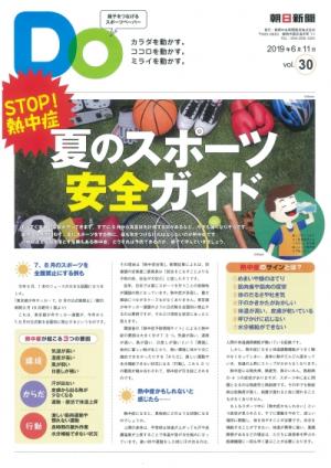 2019/06/11親子をつなげるスポーツペーパーDO VOL.30 STOP!熱中症 夏のスポーツ安全ガイド もうすぐ本格的な夏がやってきます。 すでに5月から真夏を計測する日があるなど、今年も暑くなりそうです。 屋内、屋外を問わず、夏にスポーツをする際に、 最も気をつけなければならないのが熱中症です。 一歩間違えば命を落とす危険性もある熱中症。 どうすれば予防できるのか、親子で学んでいきましょう。 次回は2019年7月9日予定です。